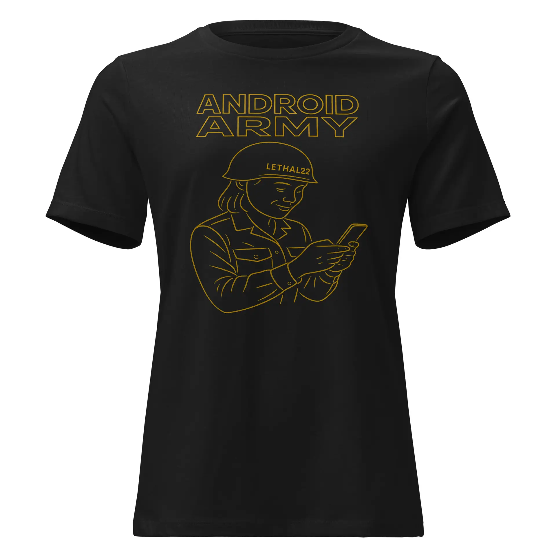 Poise. Focus. Digital strength. The Android Army Tee honors the modern woman who commands truth with clarity and calm precision. She doesn’t follow trends — she sets the signal.