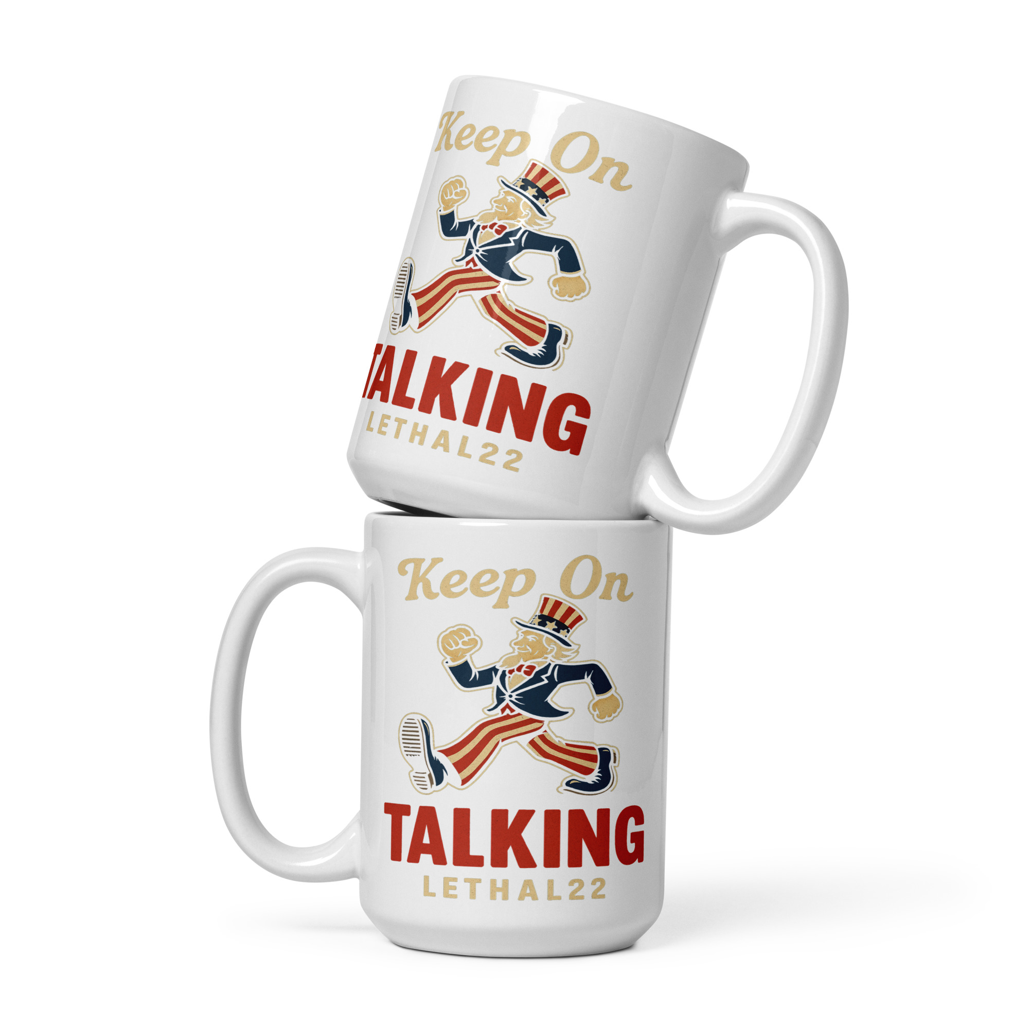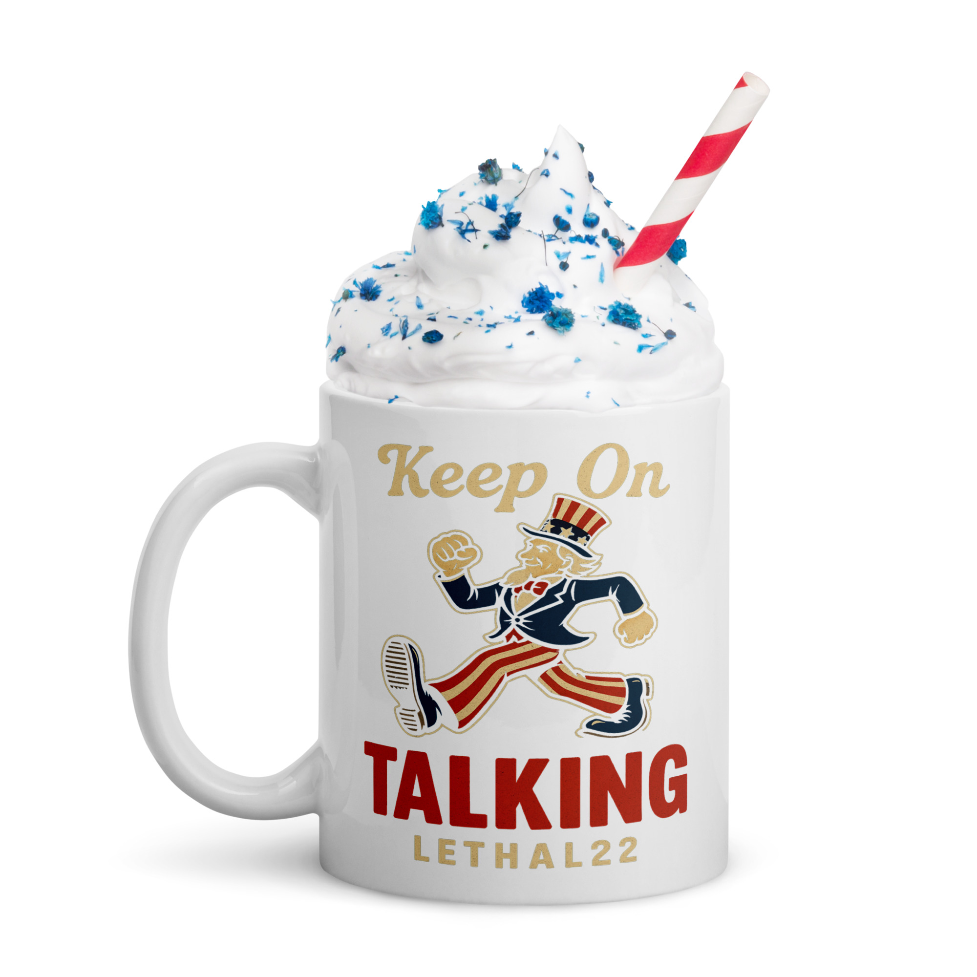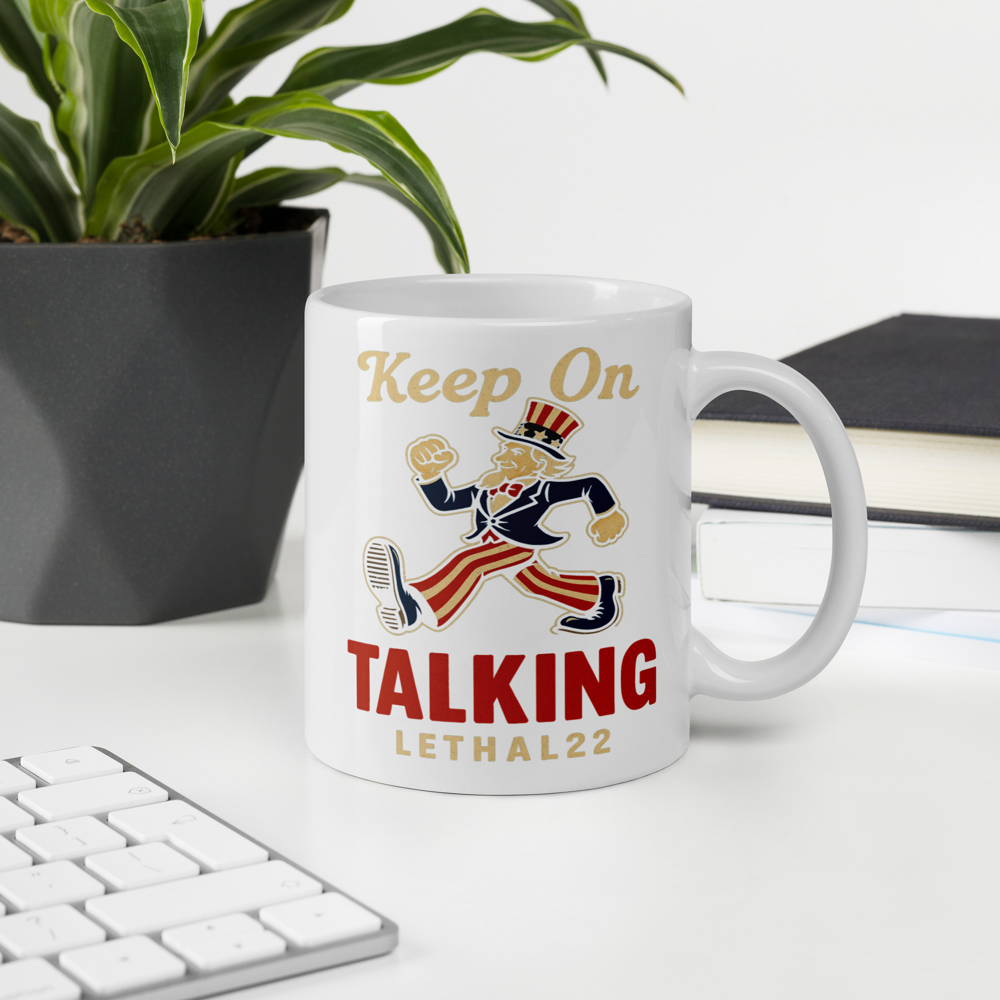 For mornings that need attitude, not permission. Whether you’re sipping your sunrise coffee, late-night tea, or anything in between, this “Keep On Talking” mug brings energy, humor, and a little rebellion to every pour. Sturdy, glossy, and built for daily use, it’s the perfect desk companion, kitchen staple, and conversation starter. Microwave it, wash it, refill it—freedom runs on caffeine, and it’s not shutting up anytime soon.